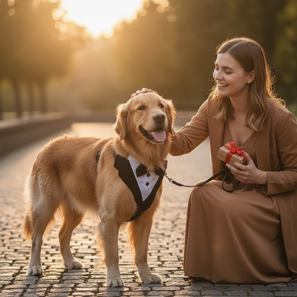 Léo était anxieux à l'idée d'intégrer son chiot aux photos de son mariage. Comment faire pour que son Beagle de 8 mois reste présentable pendant la cérémonie ? C'est là qu'il a découvert notre harnais tuxedo. Non seulement Filou est resté sagement à ses cÎtés, mais il est devenu la star des albums souvenirs, posant fiÚrement dans son costume noir et blanc assorti aux témoins. Les invités n'en revenaient pas du résultat !